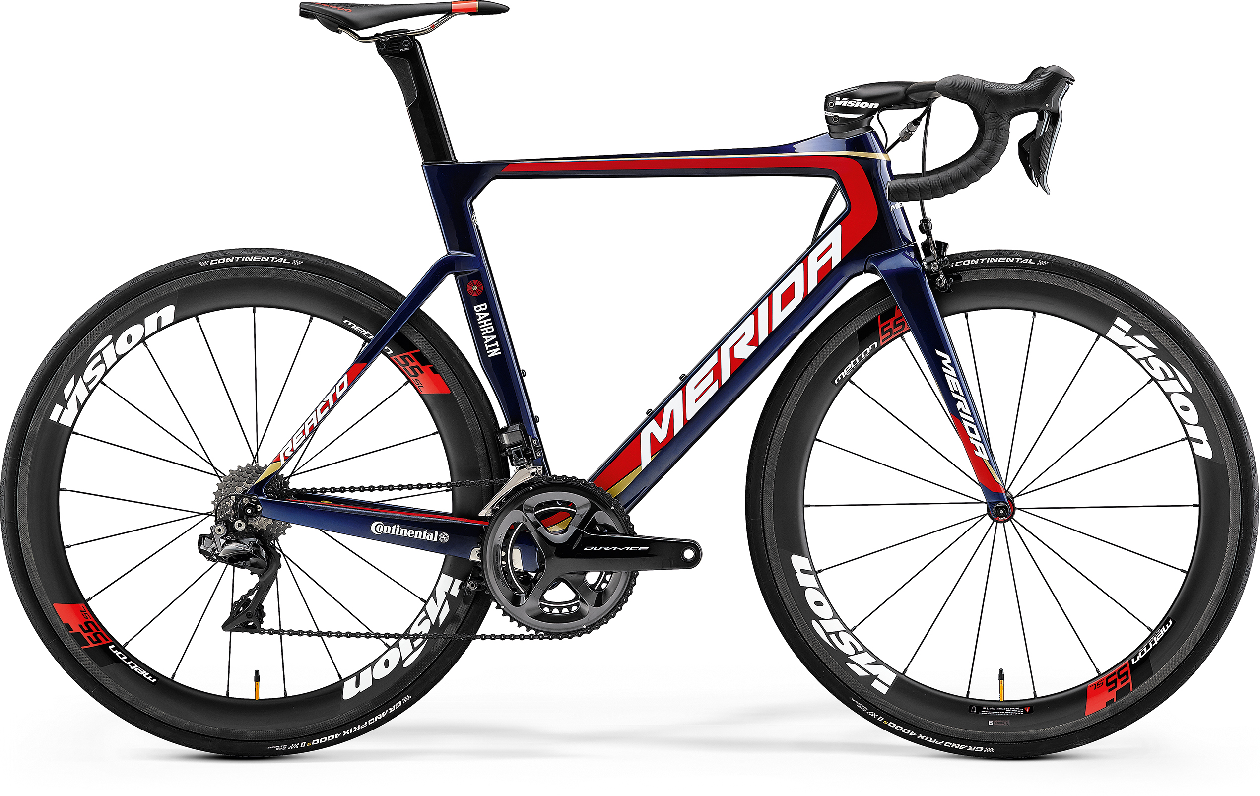 Бренд MERIDA Модель Reacto Team-E Год 2018 Серия Reacto Материал рамы Алюминий (Alloy) Рама/описание REACTO CF4 Вилка/регулировки Superlite full carbon tapered fork with direct brake mounts Диаметр колес 700C Обода full carbon 55mm section clincher Покрышки Continental Grand Prix 4000S 25c folding / Continental Grand Prix 4000S 25c folding Тормоза Ободные (V-brake) Грипсы Prologo Touch Lampre-Merida Тормоз Shimano Dura Ace - direct mount / Shimano Dura Ace - direct mount Тормозные ручки Shimano Dura Ace Уровень оборудования Профессиональный Шифтеры Shimano Dura Ace, 22 speed, Di2 Переключатель передний Shimano Dura Ace Di2 Переключатель задний Shimano Dura Ace Di2 Кассета Shimano CS-9100, 11 speed, 11-28 teeth Цепь KMC X11SL DLC Каретка FSA 386-BB30 PF6000 Шатуны Shimano Dura Ace 52-36 teeth Количество скоростей 22 Руль Vision Metron 5D full carbon integrated bar and stem Рулевая колонка FSA Reacto CF Вынос Vision Metron 5D full carbon integrated bar and stem Седло Prologo Zero II pas CPC Подседельный штырь Reacto carbon superlite [Di2 ready] Пол/возраст Мужской Вес 7,28 кг. -
